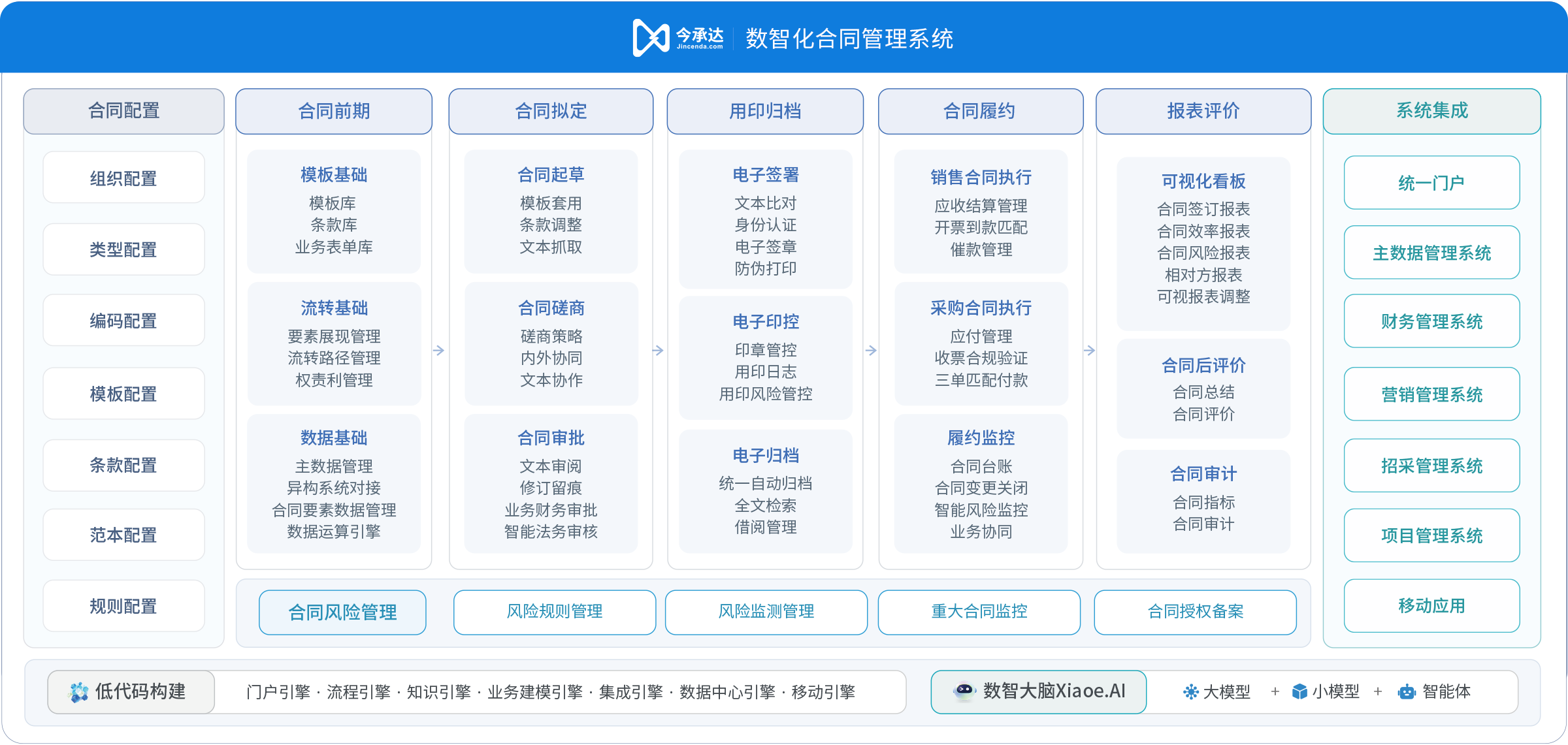 提供了从合同前期,到合同便捷起草、合规审批、电子签署、履约控制、数智化归档,合同全生命周期的数智化管理手段。