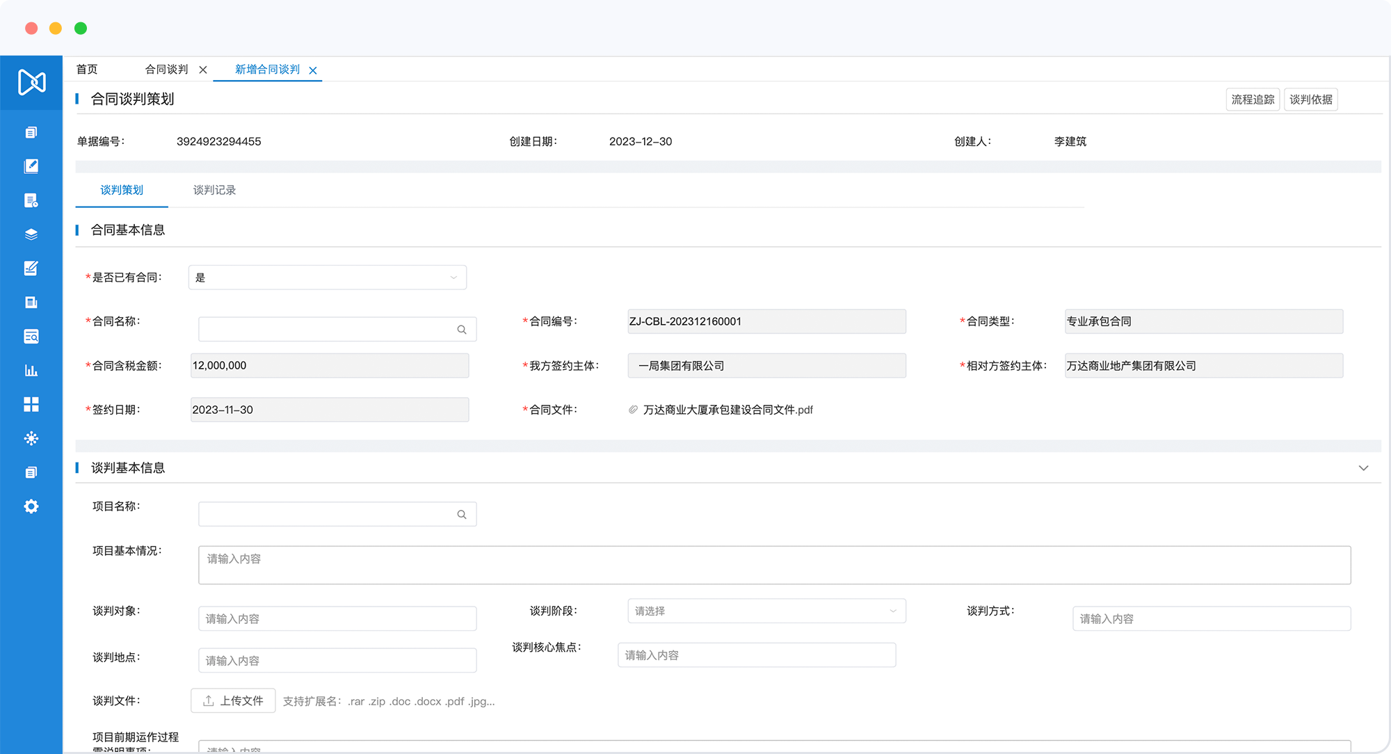 快速构建内部谈判策划,谈判磋商的所有信息都能够记录下来。