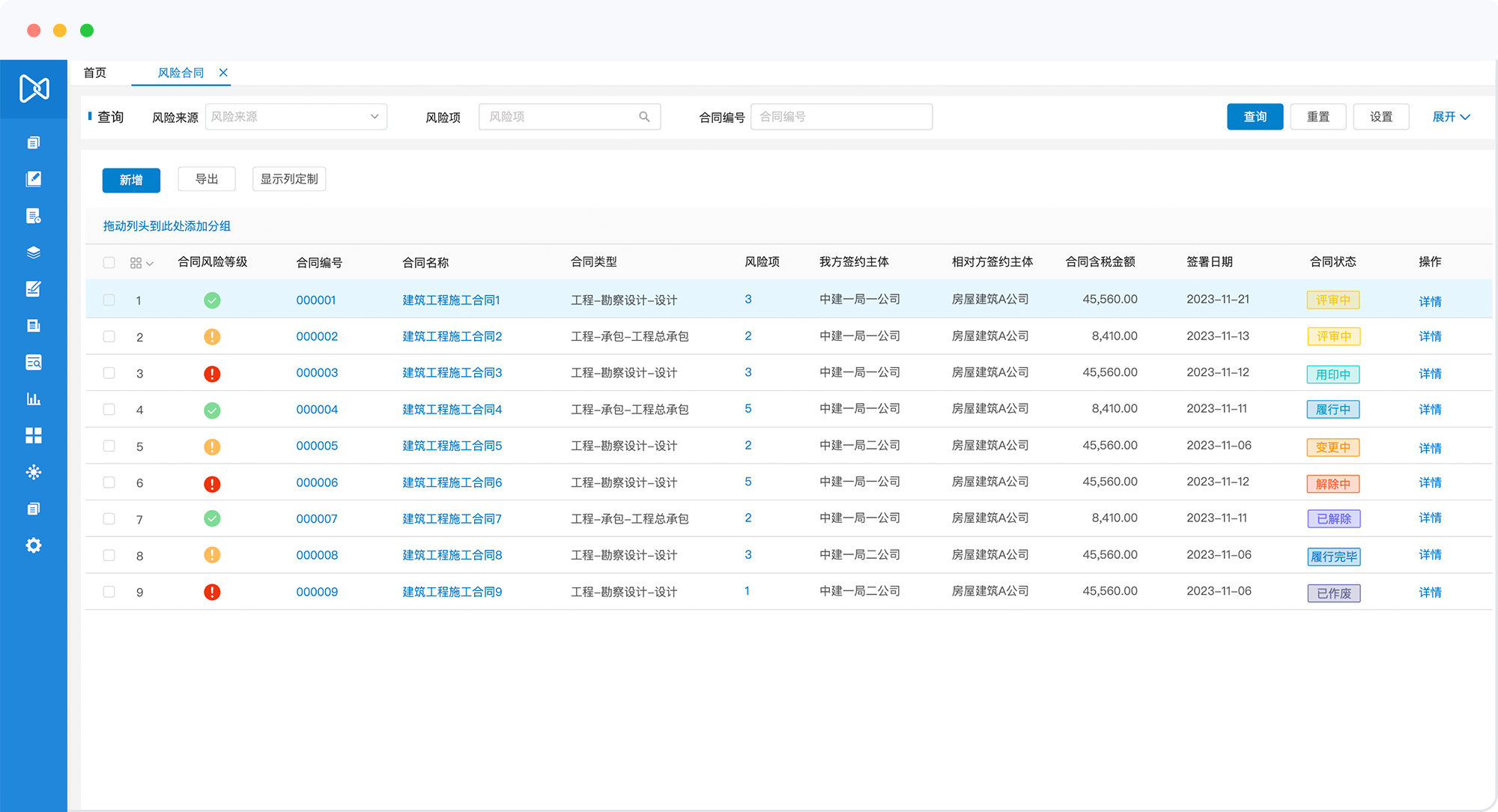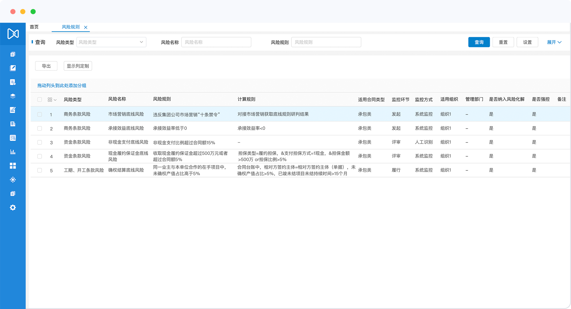 通过风险规则库与埋点,实现合同签订、履约全过程的风险监控预警。
