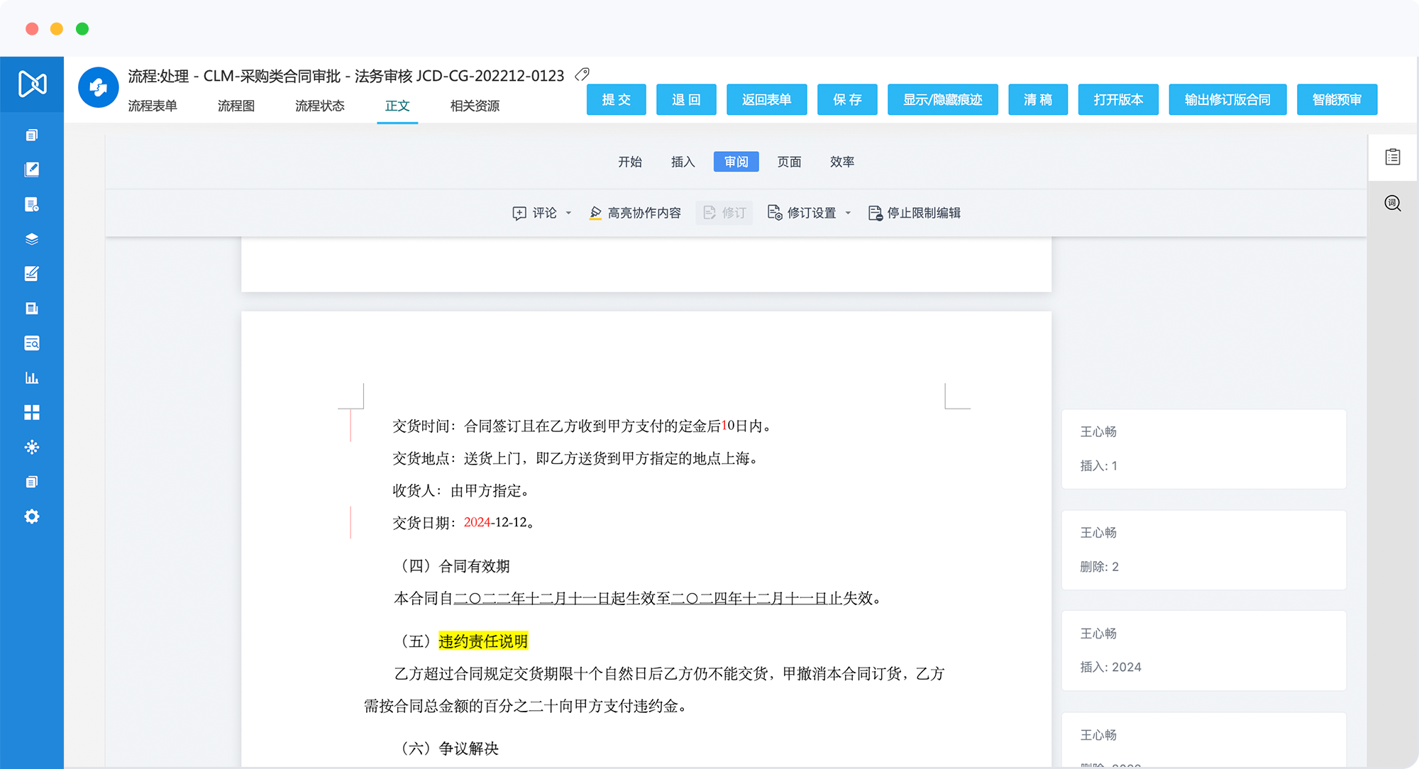 能够限定合同可编辑区域、所有编辑留痕保存并生成新版本。