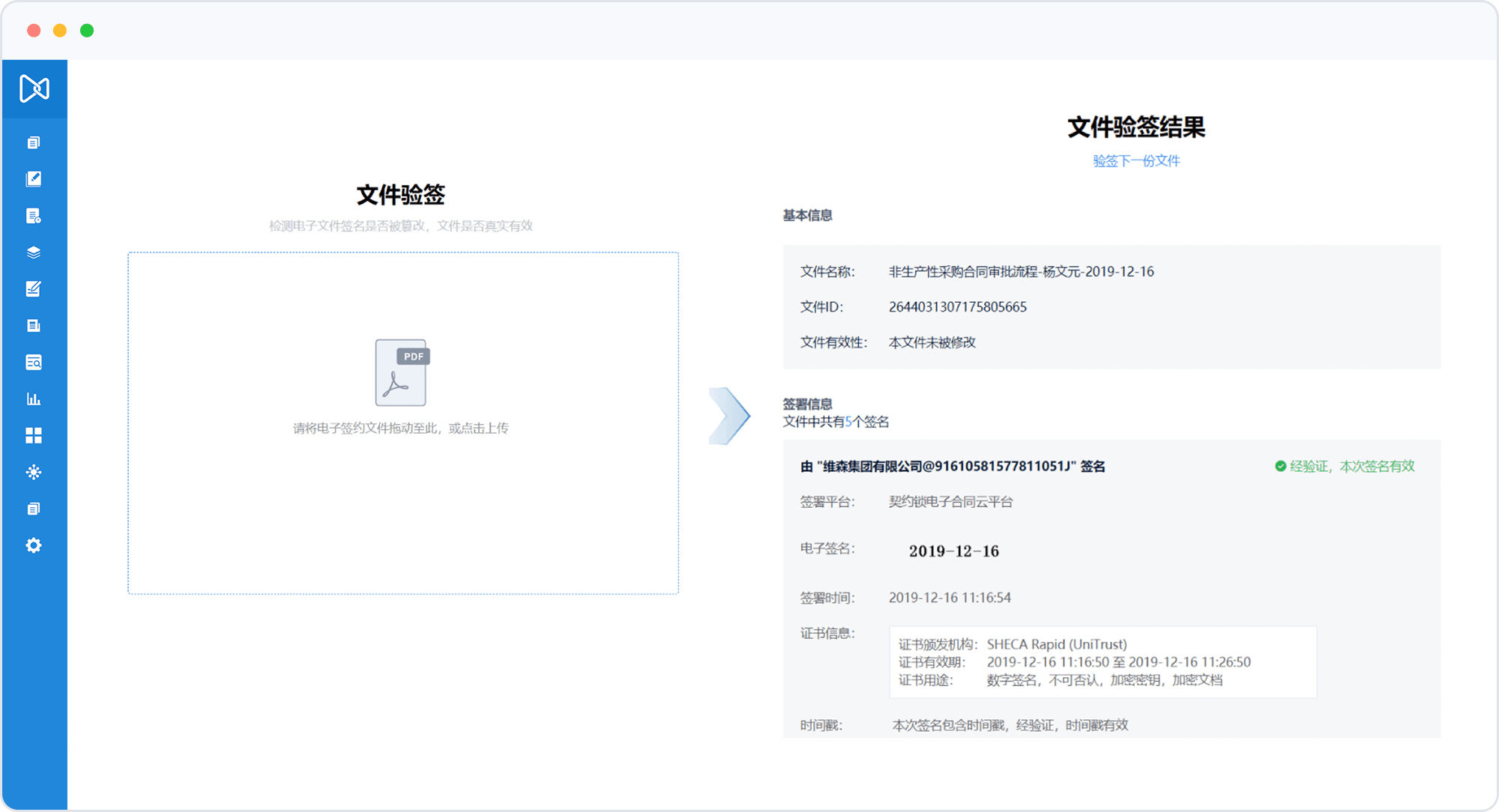 能够快速鉴别外部发来的电子合同文件的真伪。