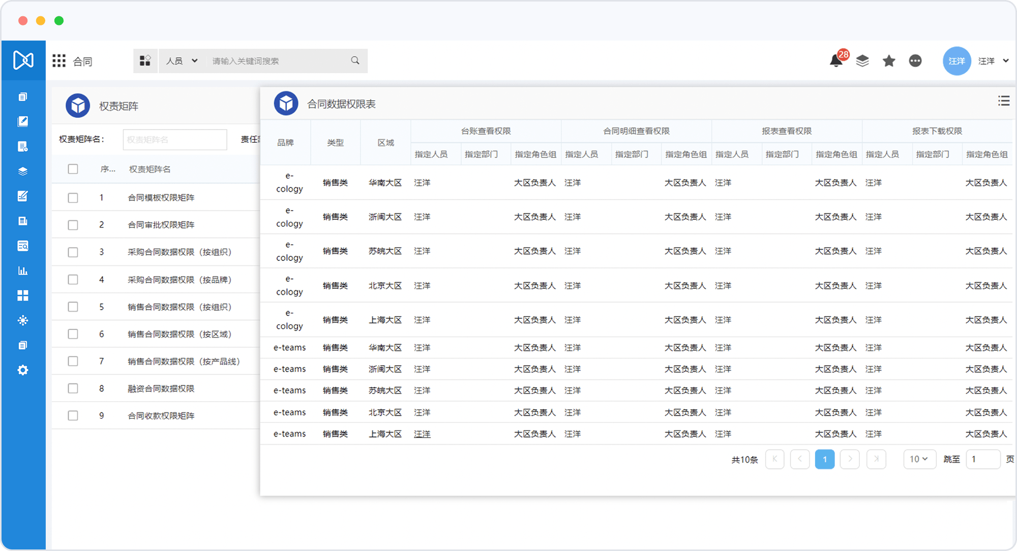 合同数据能够按照组织、区域、产品等单独赋权,能够从业务的维度去汇总及查看合同数据。