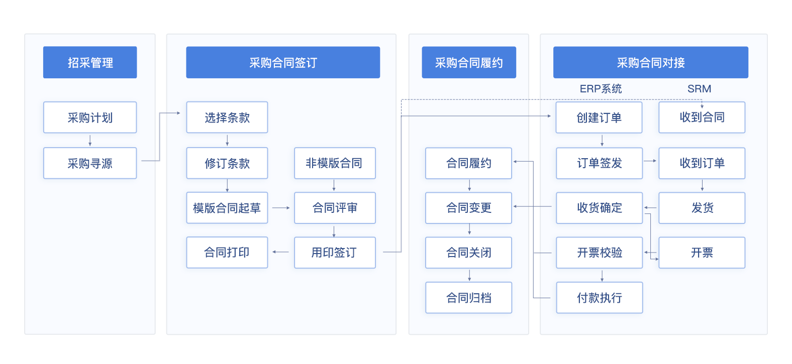 - 中标结果触发合同起草,采购标的、中标企业信息自动获取,避免信息错误;