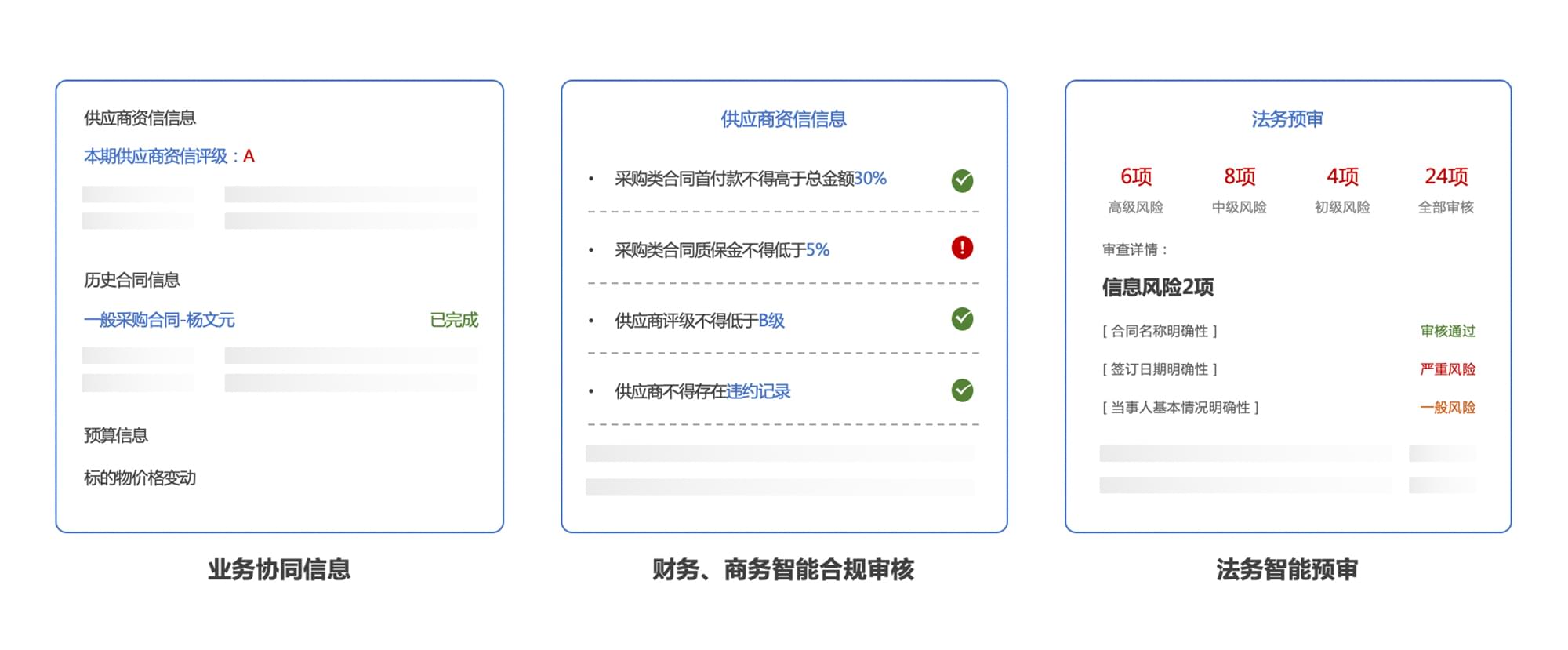 不同版本的合同可进行内容比对,高亮显示差异,支持docx、pdf以及图片的比对。
