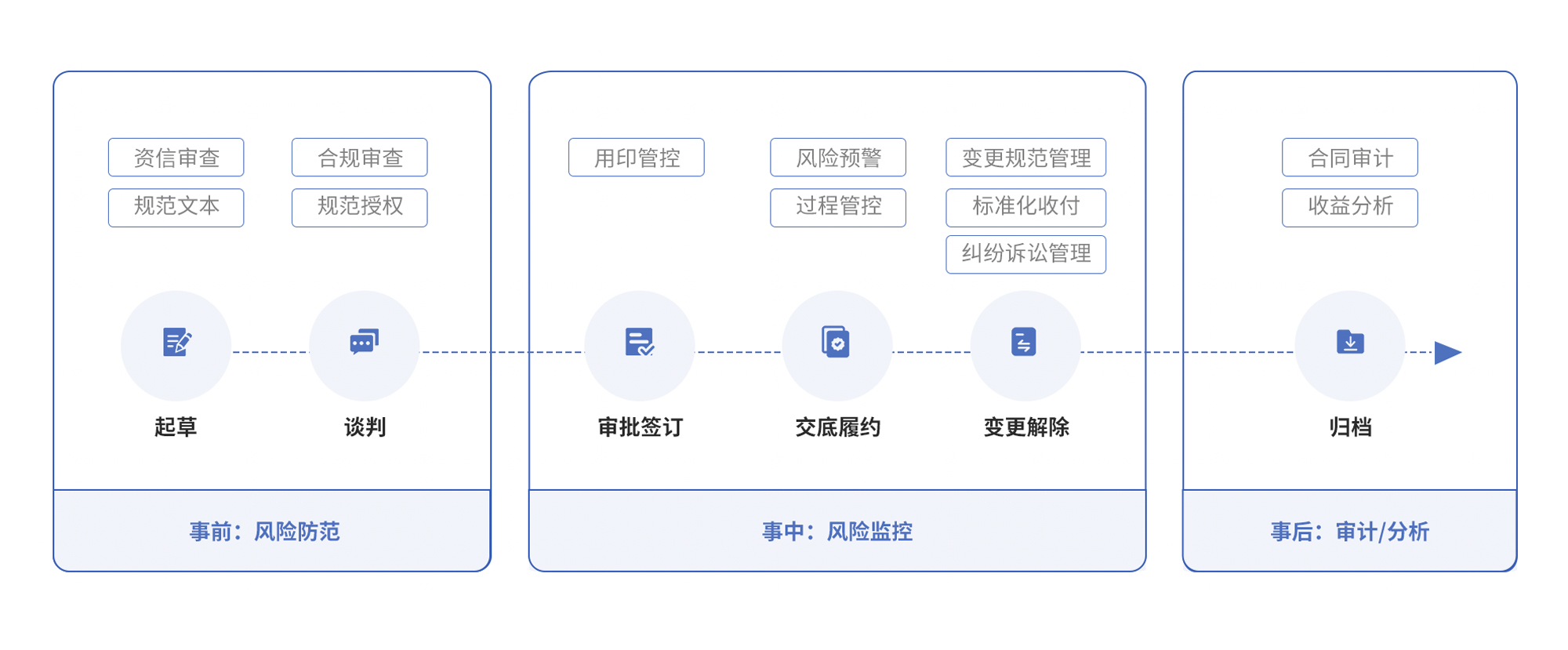 拉通内外部人员实现多方在线编辑磋商,完整记录变更信息。