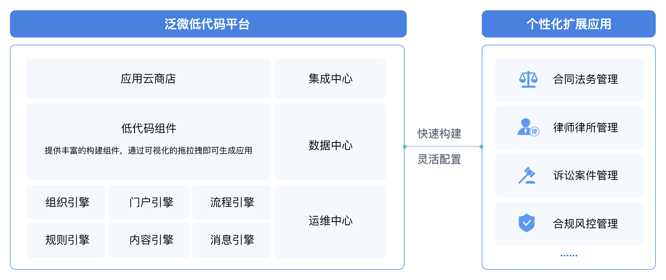 数智化时代,一切都在快速变化。泛微e-builder让您不懂代码亦可快速构建应用,适应合同管理持续变化的需求。泛微e-builder低代码平台,以表单、流程、模型、数据为驱动,通过可视化拖拽,流程化的业务编排,自动化集成,配置化数据管理,在线化代码扩展的平台能力;让从轻量的合同审批管理,到涵盖全类型、全周期、多系统集成的复杂合同管理业务场景都可轻松构建。
